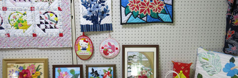 表題のように「着物リフォーム・パッチワークの二人展」を3月末日まで開催です。